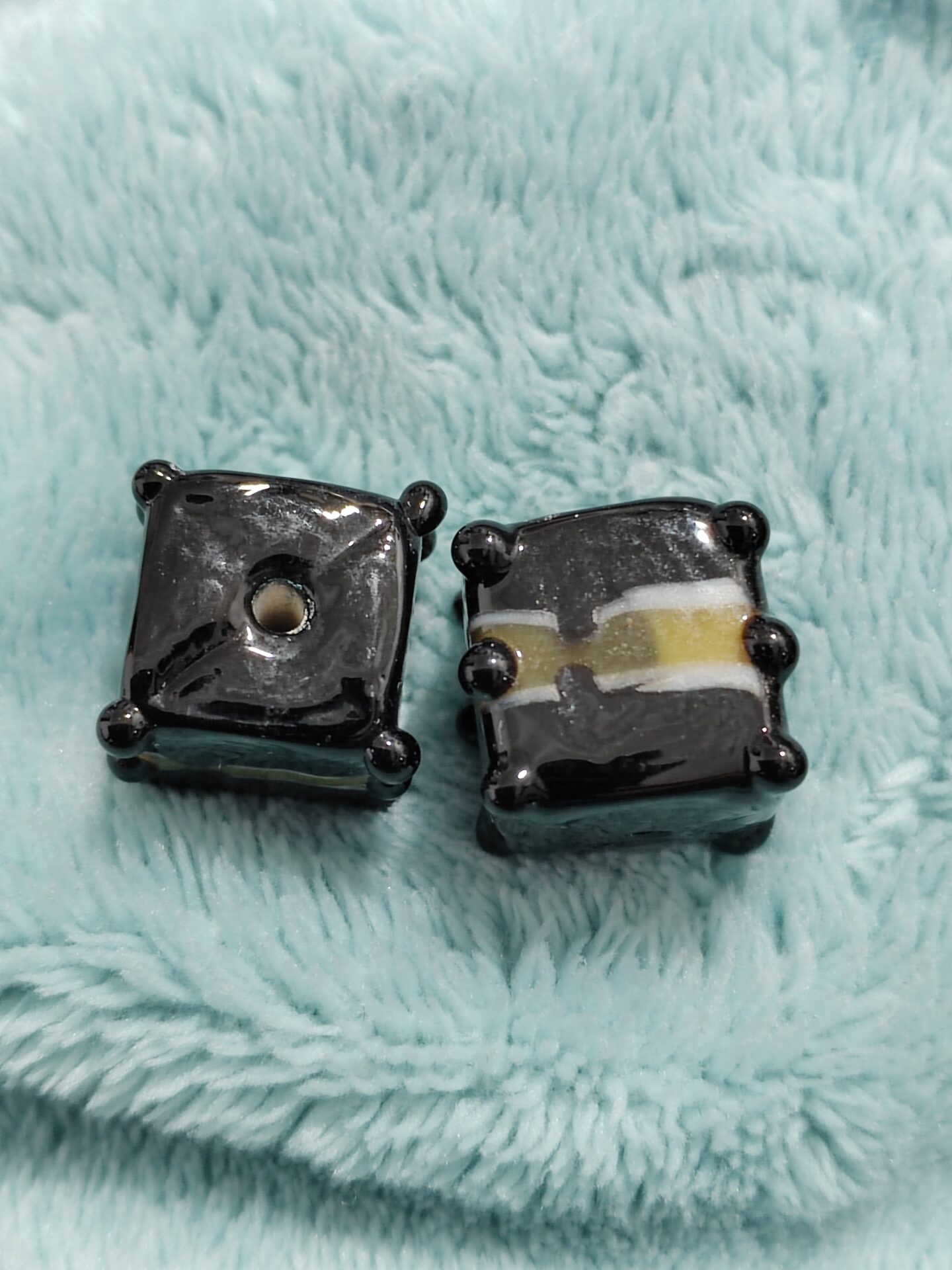 1 cuenta de cristal de murano cuadrada rayas negras