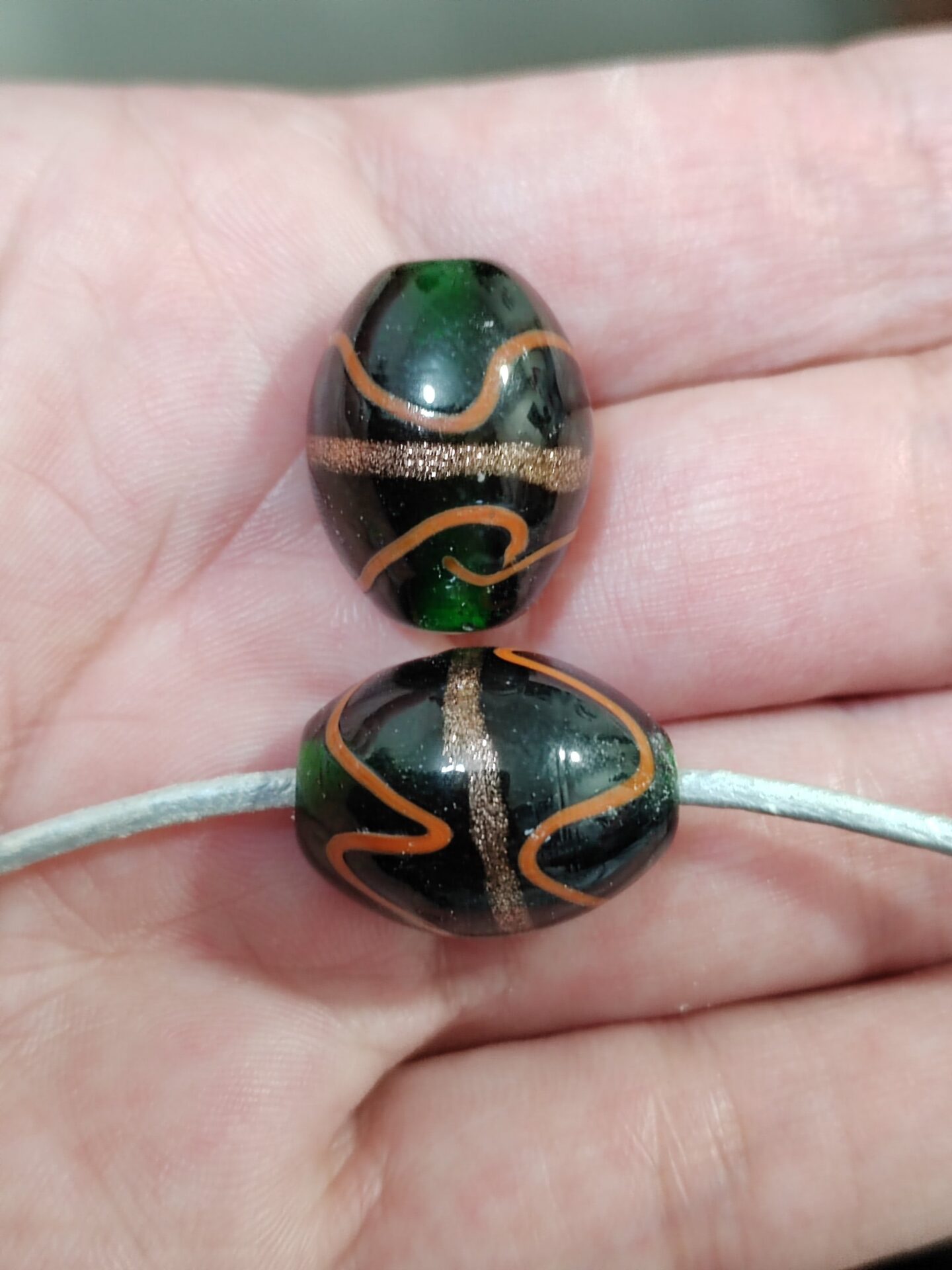 1 cuenta de cristal de murano verdes ovalada 18x14mm