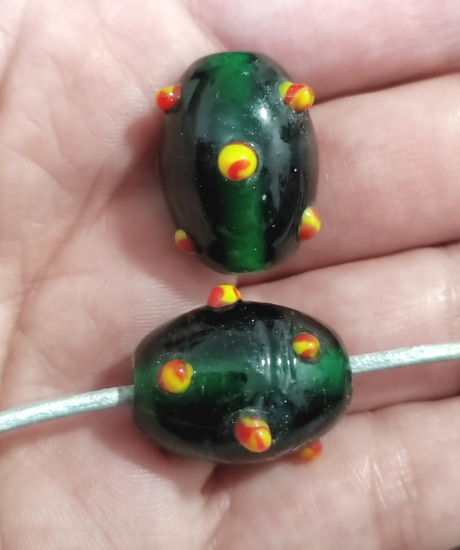 1 cuenta de cristal de murano verdes puntitos colores
