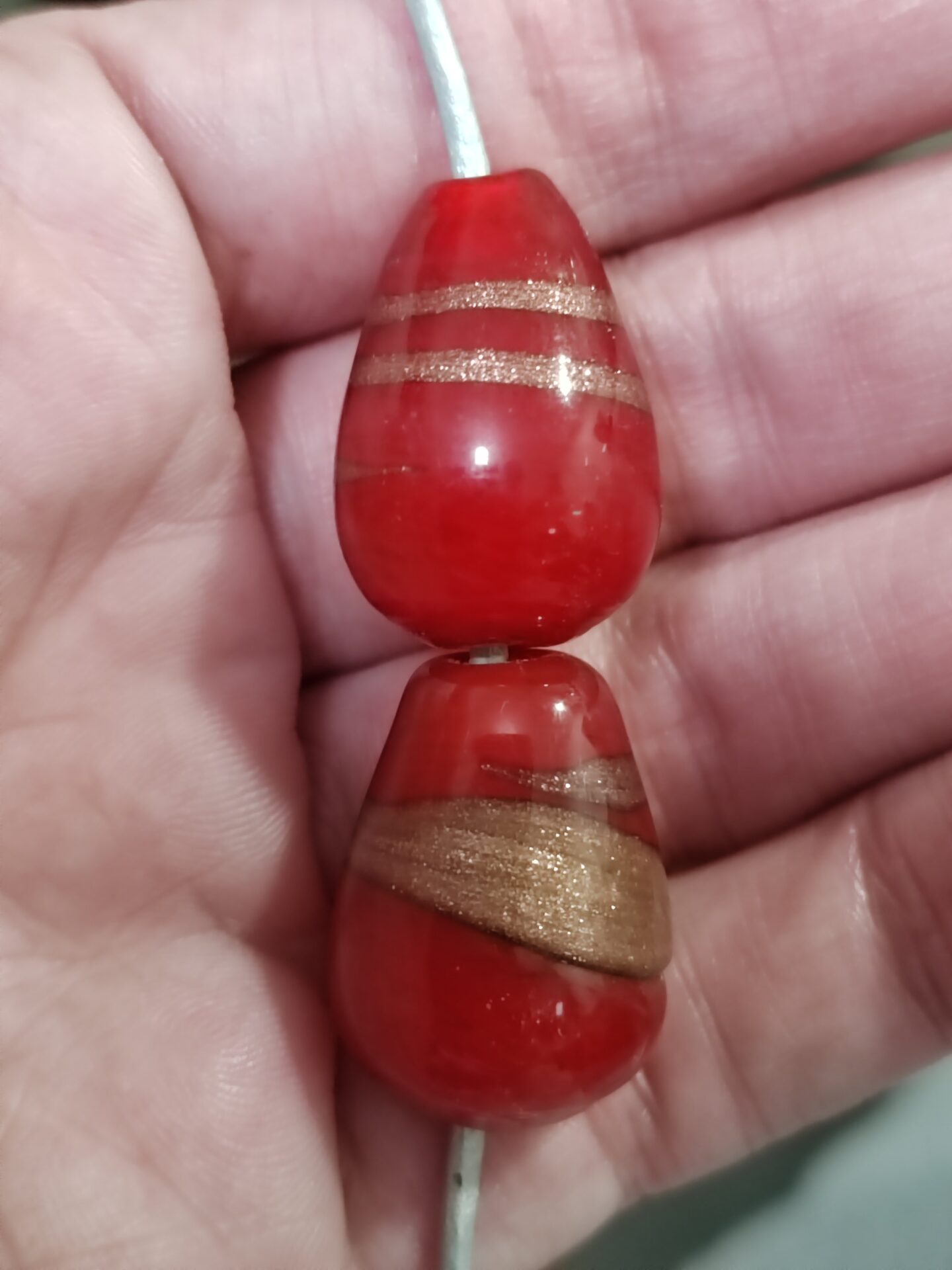 1 cuenta de murano lágrima roja dorada 23mm