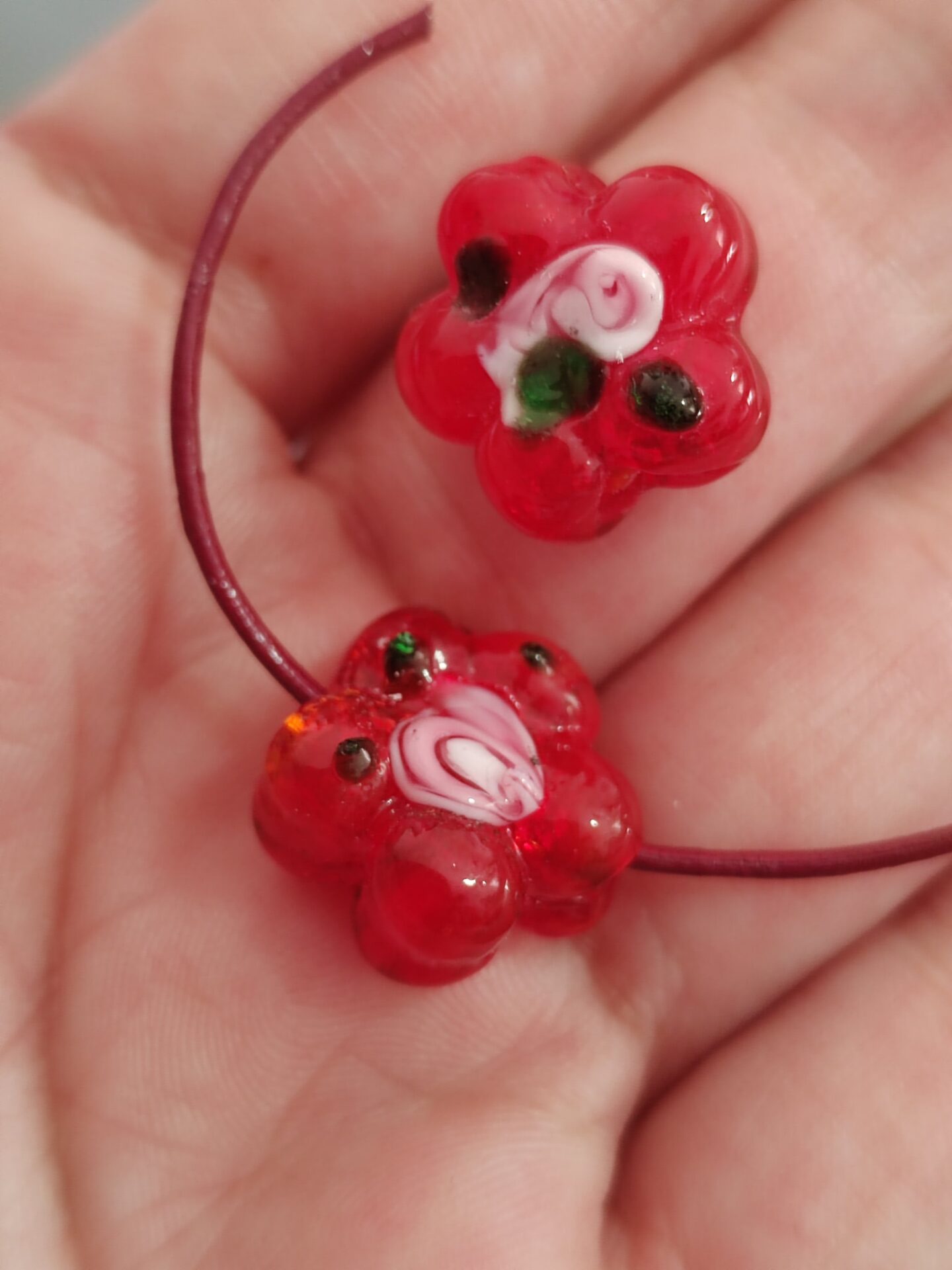 1 cuenta de cristal de murano flor roja 16mm