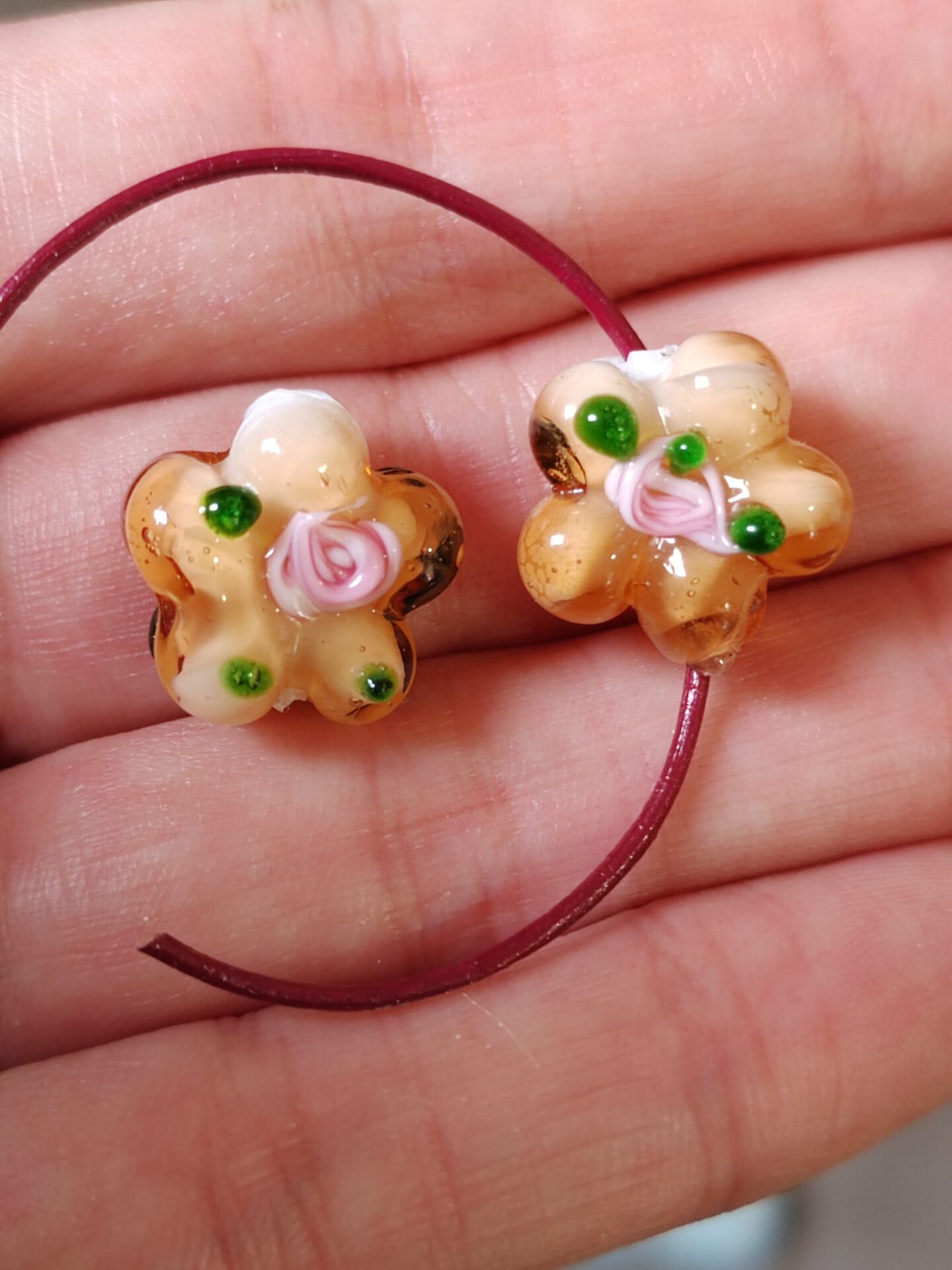 cuenta de cristal de murano flor salmón 16mm