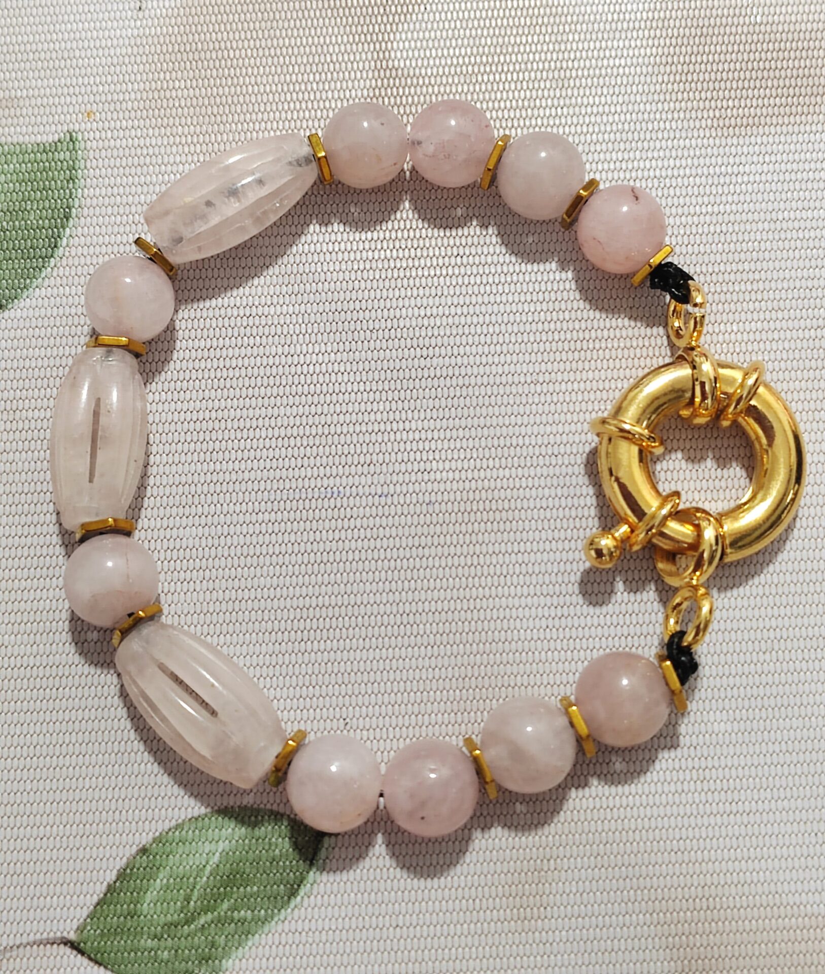 pulsera de cuarzo rosa tallado con cierre acero doradoDisponibilidad: 1 disponibles